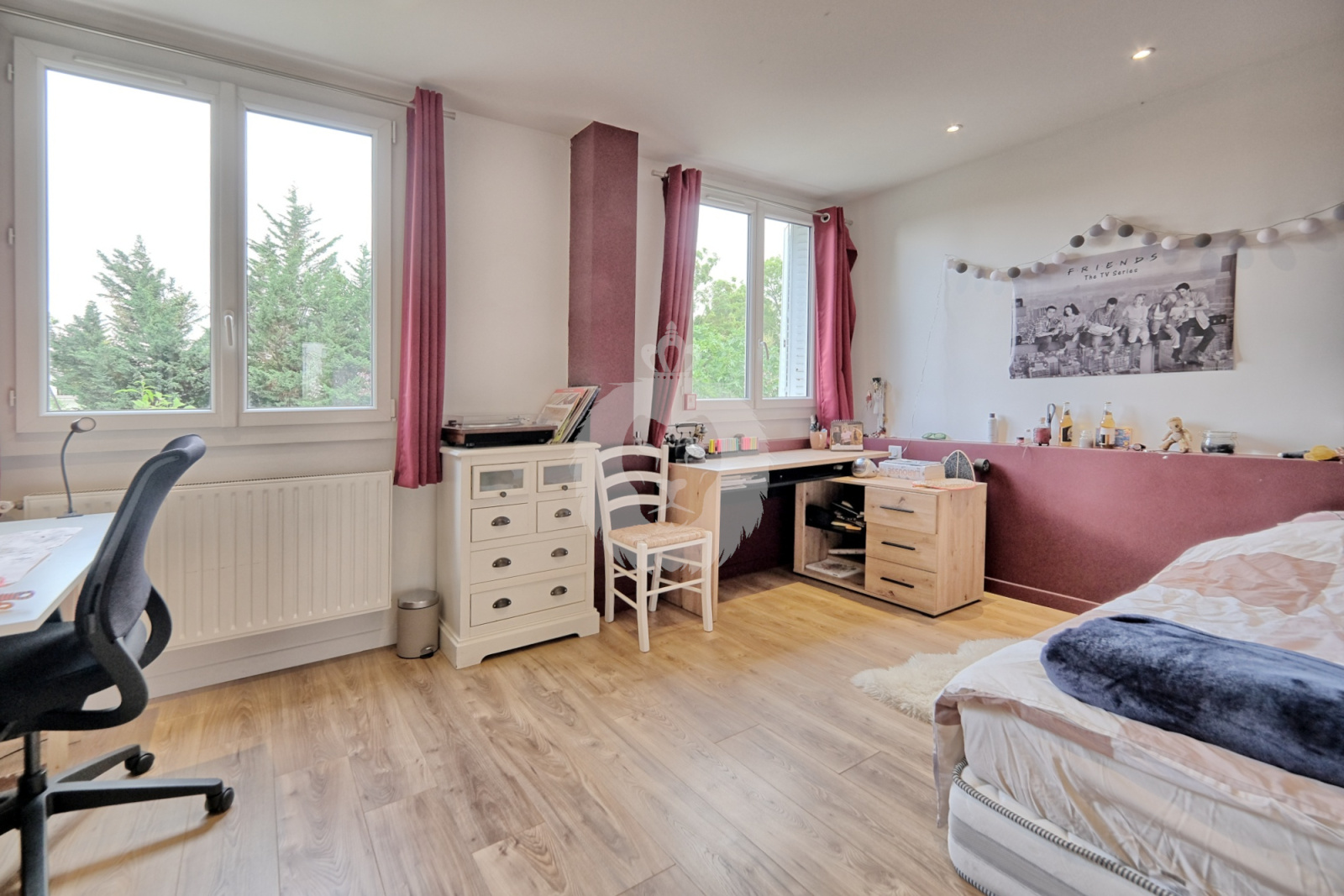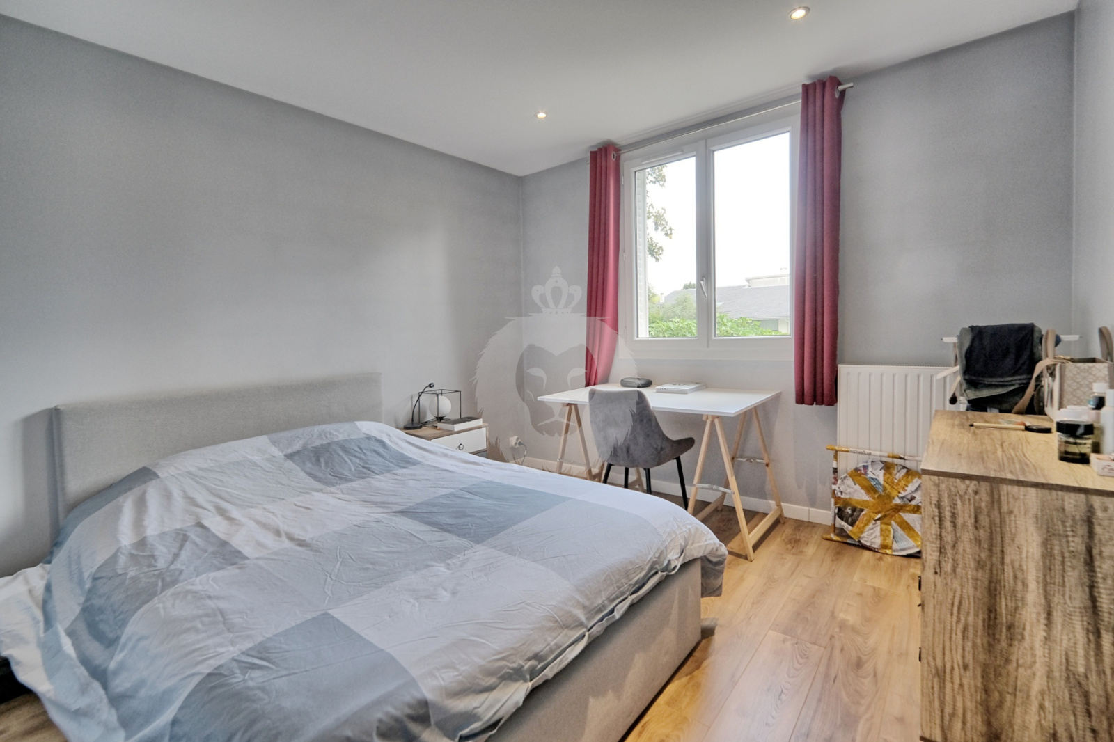 Une première chambre de taille généreuse est accessible directement depuis le séjour. Un couloir avec dressing conduit à la salle de bains, les WC indépendants et la seconde chambre.
