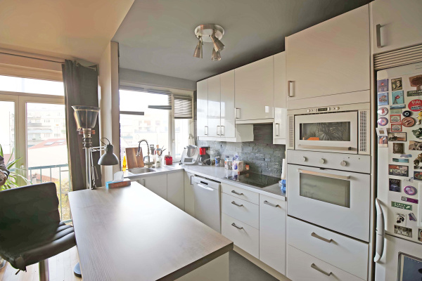 La loggia, intégrée à l’espace de vie, crée un espace rare de plus de 40m2, particulièrement lumineux avec vue sur jardin.