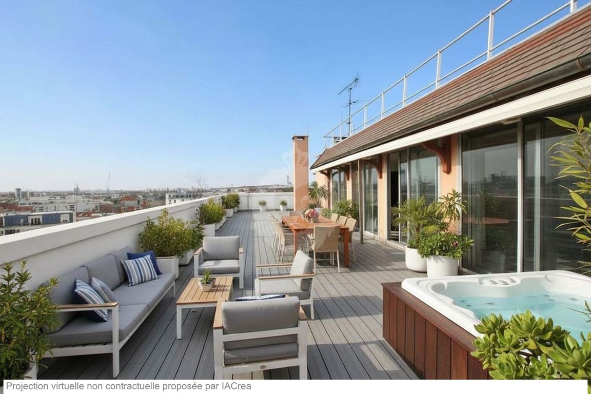 L’ensemble de cet étage s’ouvre sur une exceptionnelle terrasse panoramique de 112 m², sans aucun vis-à-vis, offrant une vue imprenable sur toute la ville… jusqu’à la Tour Eiffel.