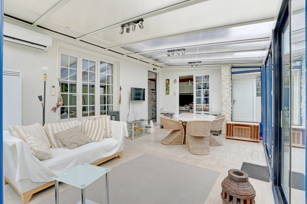 Édifiée sur une parcelle arborée de 507 m², elle se compose d'une cuisine dinatoire conviviale, de plusieurs espaces de vie chaleureux : séjour cosy avec cheminée, salle à manger, et véranda lumineuse, chauffée et climatisée, 5 chambres spacieuses, une salle de bains, une salle d’eau, deux WC, une buanderie et un sous-sol offrant de généreux espaces de rangement.