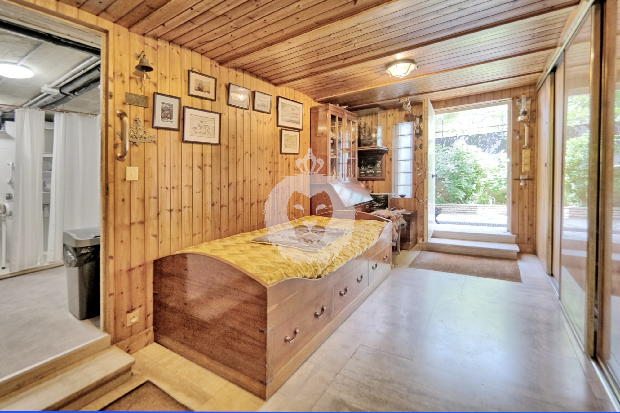 Au rez-de-jardin, une pièce pouvant servir de bureau ou chambre d'ami, une chaufferie avec buanderie et douche... et enfin la dépendance raccordée à la maison avec cuisine et accès à la cave.