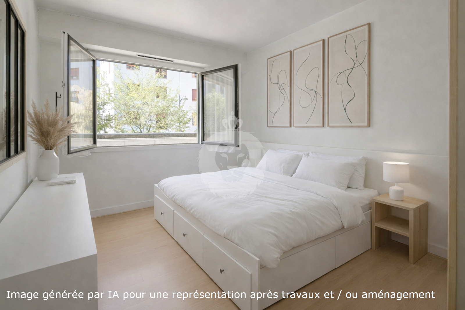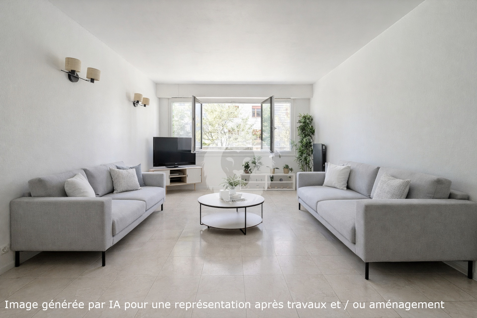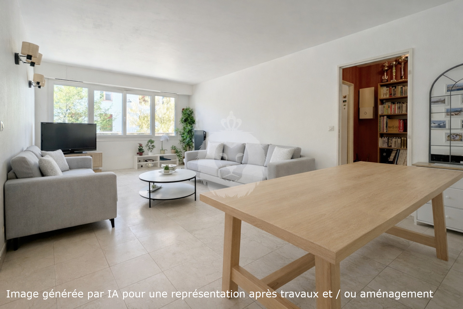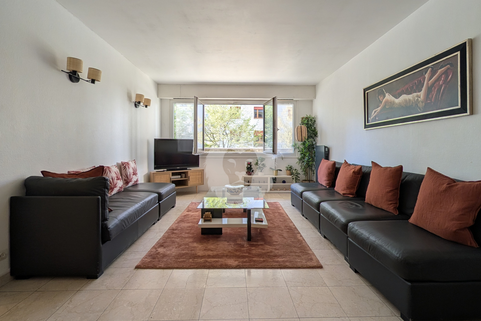 L’espace de vie, d’environ 24 m², offre une belle pièce traversante permettant de créer un coin repas et un salon accueillant aisément deux canapés. La vue dégagée sur les arbres de la rue apporte une atmosphère paisible et agréable au quotidien.