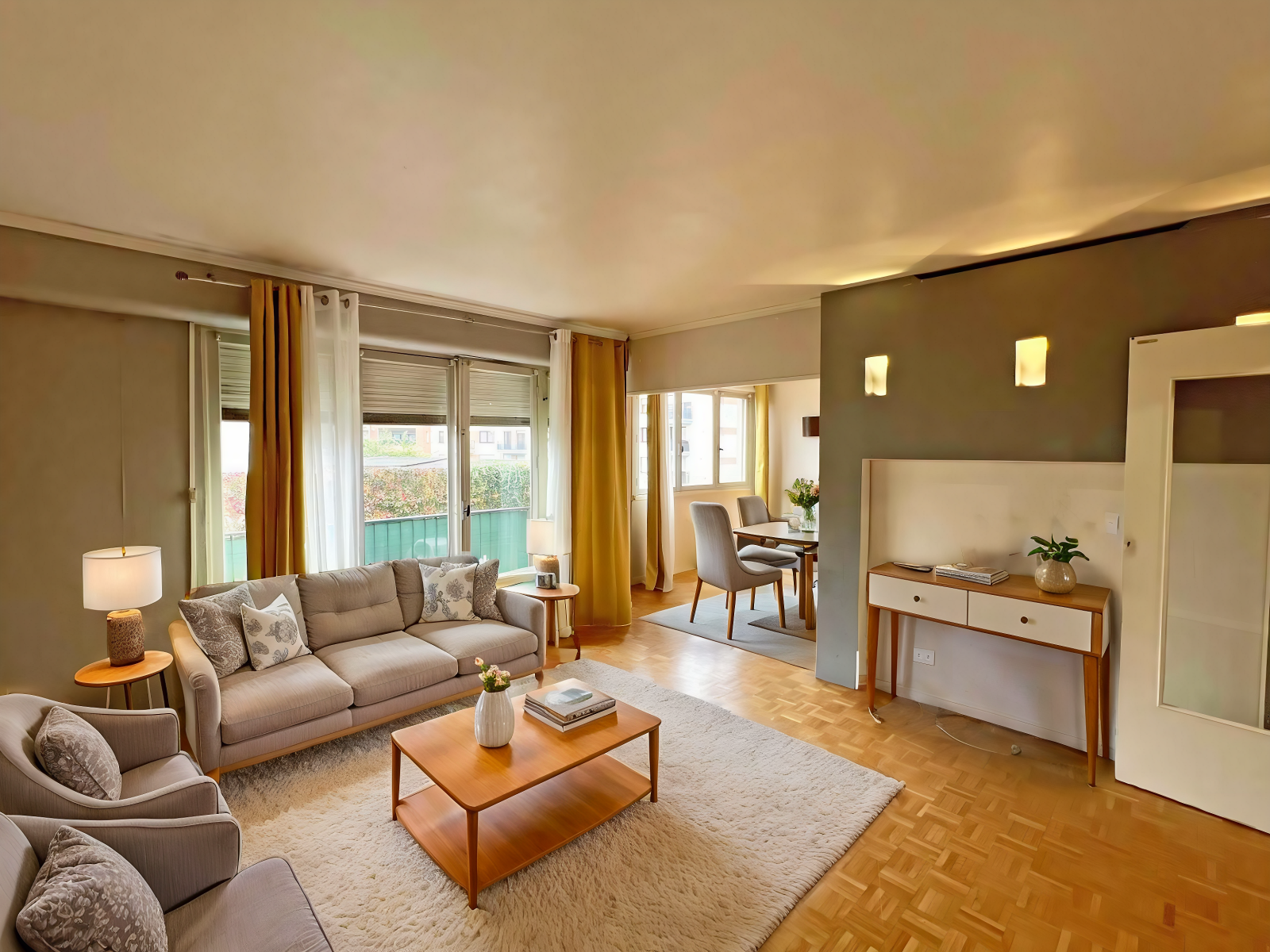 Le double séjour est spacieux et lumineux et est doté d'un espace extérieur agréable.
